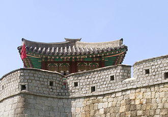 A guard pavilion, called poru in Korean, is an outwardly projecting structure topped with a pavilion that functioned as a soldiers’ lookout. There are five guard pavilions in Hwaseong Fortress.