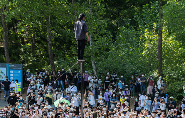 '숲 속의 파티' 2022 수원연극축제가 3년 만에 여러분을 찾아갑니다. 5월 20일부터 22일까지 3일간 경기상상캠퍼스와 수원탑동시민농장에서 ‘숲속의 파티’가 열립니다. 올해는 생태·감탄(減炭)·예술·장소특정성(site specific)을 주제로 장소, 배우, 관객이 함께 만들어가는 지속가능한 축제로 진행됩니다. 자연친화적 공연예술축제인 수원연극축제에서 완연한 봄의 기운을 만끽하세요.